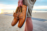 Byron is a classic mens casual boat shoe. It’s made from rich premium First Grade leather with a smooth matte finish. It is an easy slip on fit with contrast stitching and a thread-through lace design. Byron is set on a sturdy rubber outsole with coloured mid runner as a point of difference.